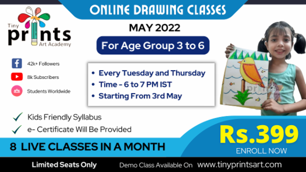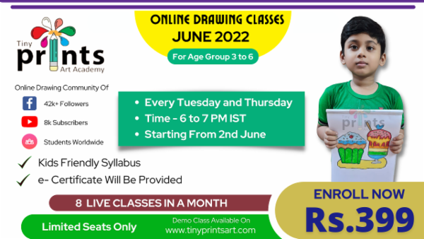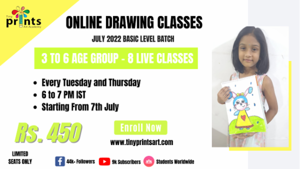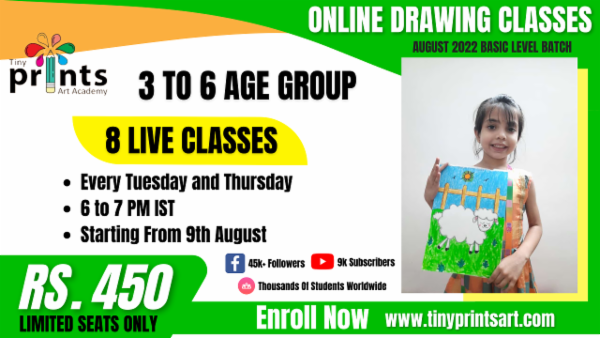 We bring you these 45 wonderful drawings, designed for 3 to 6 Age Group. Class recordings of our live sessions. These are pre recorded 1 hour sessions with step by step guide for drawing and coloring. Start Your Art Journey With Us !