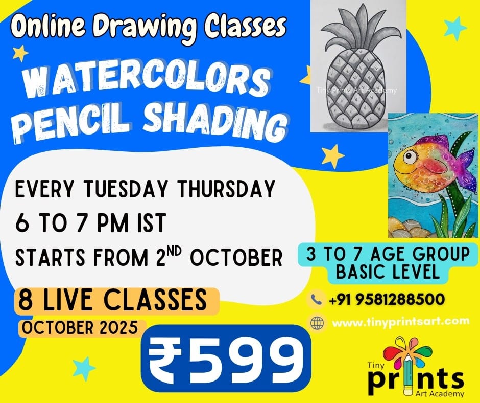 1)Drawing is taught by using easy shapes, lines, numbers, alphabets.